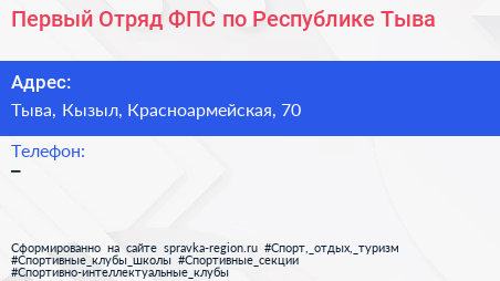 Первый Отряд ФПС по Республике Тыва по адресу Тыва, Кызыл, Красноармейская, 70 в дальнейшем Организация, размещена в следующих категориях: