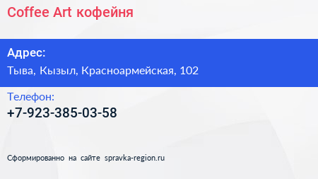 Coffee Art, кофейня по адресу Тыва, Кызыл, Красноармейская, 102 в дальнейшем Организация, размещена в следующих категориях: