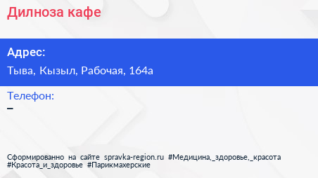 Дилноза, кафе по адресу Тыва, Кызыл, Рабочая, 164а в дальнейшем Организация, размещена в следующих категориях: