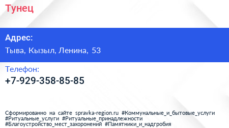 Тунец по адресу Тыва, Кызыл, Ленина, 53 в дальнейшем Организация, размещена в следующих категориях:
