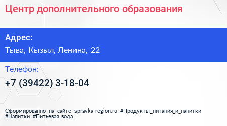 Центр дополнительного образования по адресу Тыва, Кызыл, Ленина, 22 в дальнейшем Организация, размещена в следующих категориях: