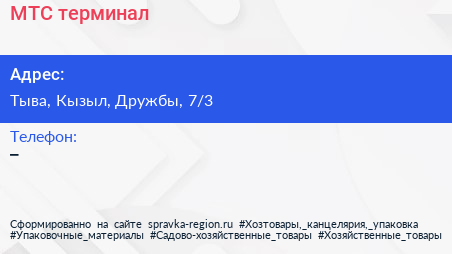 МТС, терминал по адресу Тыва, Кызыл, Дружбы, 7/3 в дальнейшем Организация, размещена в следующих категориях: