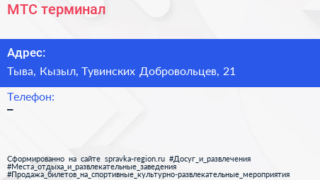 МТС, терминал по адресу Тыва, Кызыл, Тувинских Добровольцев, 21 в дальнейшем Организация, размещена в следующих категориях: