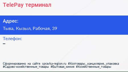 TelePay, терминал по адресу Тыва, Кызыл, Рабочая, 39 в дальнейшем Организация, размещена в следующих категориях: