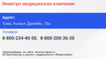Инвитро, медицинская компания по адресу Тыва, Кызыл, Дружбы, 15а в дальнейшем Организация, размещена в следующих категориях: