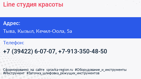 Line, студия красоты по адресу Тыва, Кызыл, Кечил-Оола, 5а в дальнейшем Организация, размещена в следующих категориях: