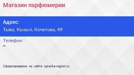Магазин парфюмерии по адресу Тыва, Кызыл, Кочетова, 49 в дальнейшем Организация, размещена в следующих категориях: