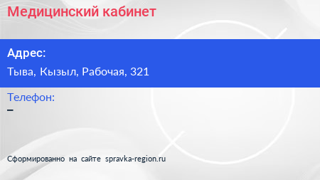 Медицинский кабинет по адресу Тыва, Кызыл, Рабочая, 321 в дальнейшем Организация, размещена в следующих категориях: