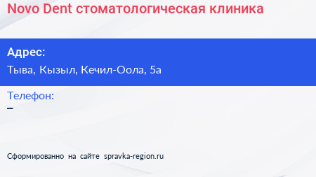 Novo Dent, стоматологическая клиника по адресу Тыва, Кызыл, Кечил-Оола, 5а в дальнейшем Организация, размещена в следующих категориях: