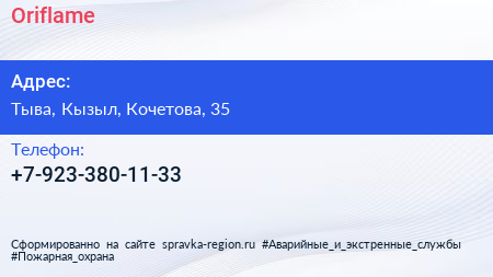 Oriflame по адресу Тыва, Кызыл, Кочетова, 35 в дальнейшем Организация, размещена в следующих категориях: