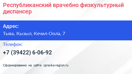 Республиканский врачебно-физкультурный диспансер по адресу Тыва, Кызыл, Кечил-Оола, 7 в дальнейшем Организация, размещена в следующих категориях: