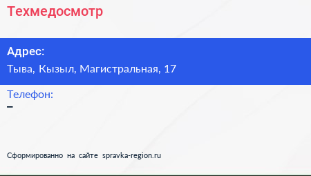 Техмедосмотр по адресу Тыва, Кызыл, Магистральная, 17 в дальнейшем Организация, размещена в следующих категориях:
