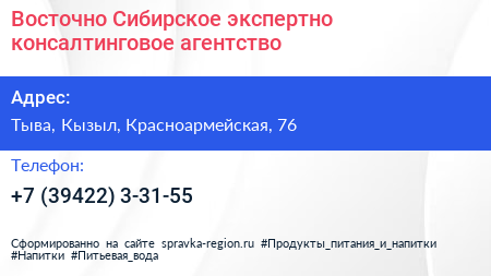Восточно-Сибирское экспертно-консалтинговое агентство по адресу Тыва, Кызыл, Красноармейская, 76 в дальнейшем Организация, размещена в следующих категориях: