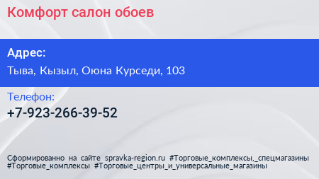 Комфорт, салон обоев по адресу Тыва, Кызыл, Оюна Курседи, 103 в дальнейшем Организация, размещена в следующих категориях: