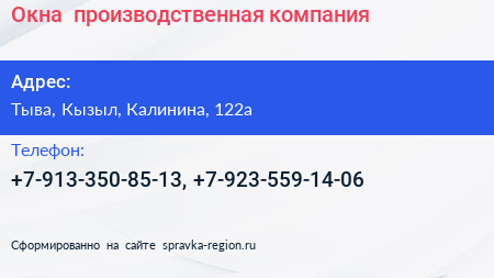 Окна+, производственная компания по адресу Тыва, Кызыл, Калинина, 122а в дальнейшем Организация, размещена в следующих категориях: