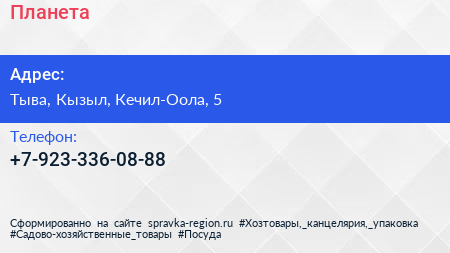 Планета по адресу Тыва, Кызыл, Кечил-Оола, 5 в дальнейшем Организация, размещена в следующих категориях: