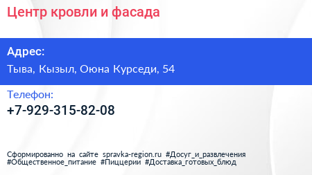 Центр кровли и фасада по адресу Тыва, Кызыл, Оюна Курседи, 54 в дальнейшем Организация, размещена в следующих категориях: