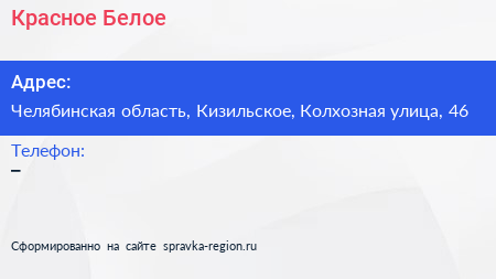 Красное & Белое по адресу Челябинская область, Кизильское, Колхозная улица, 46 в дальнейшем Организация, размещена в следующих категориях: