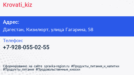 Krovati_kiz по адресу Дагестан, Кизилюрт, улица Гагарина, 58 в дальнейшем Организация, размещена в следующих категориях: