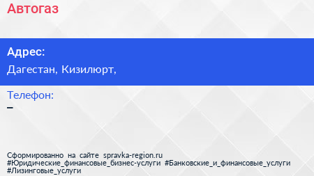 Автогаз по адресу Дагестан, Кизилюрт, в дальнейшем Организация, размещена в следующих категориях: