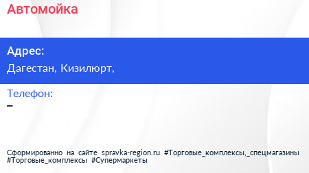 Автомойка по адресу Дагестан, Кизилюрт, в дальнейшем Организация, размещена в следующих категориях:
