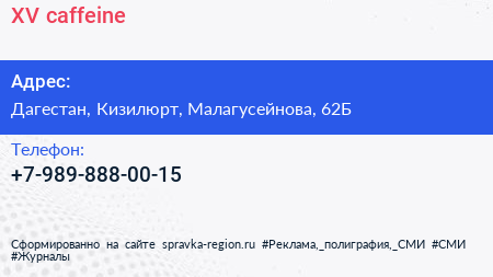 XV caffeine по адресу Дагестан, Кизилюрт, Малагусейнова, 62Б в дальнейшем Организация, размещена в следующих категориях: