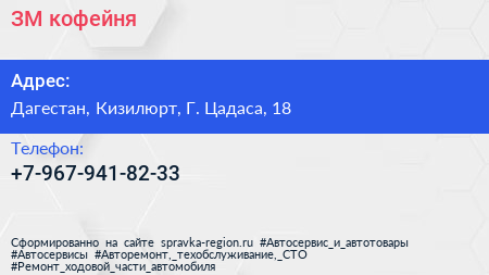 ЗМ, кофейня по адресу Дагестан, Кизилюрт, Г. Цадаса, 18 в дальнейшем Организация, размещена в следующих категориях:
