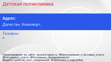 Детская поликлиника по адресу Дагестан, Кизилюрт, в дальнейшем Организация, размещена в следующих категориях: