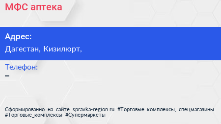 МФС, аптека по адресу Дагестан, Кизилюрт, в дальнейшем Организация, размещена в следующих категориях: