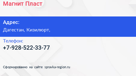 Магнит Пласт по адресу Дагестан, Кизилюрт, в дальнейшем Организация, размещена в следующих категориях: