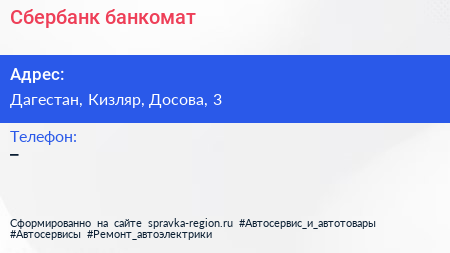 Сбербанк, банкомат по адресу Дагестан, Кизляр, Досова, 3 в дальнейшем Организация, размещена в следующих категориях: