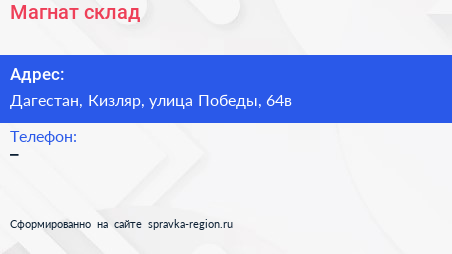 Магнат, склад по адресу Дагестан, Кизляр, улица Победы, 64в в дальнейшем Организация, размещена в следующих категориях: