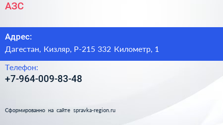 АЗС по адресу Дагестан, Кизляр, Р-215 332 Километр, 1 в дальнейшем Организация, размещена в следующих категориях: