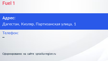 Fuel 1 по адресу Дагестан, Кизляр, Партизанская улица, 1 в дальнейшем Организация, размещена в следующих категориях: