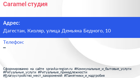 Caramel, студия по адресу Дагестан, Кизляр, улица Демьяна Бедного, 10 в дальнейшем Организация, размещена в следующих категориях: