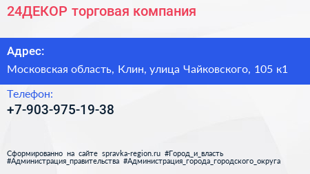 24ДЕКОР, торговая компания по адресу Московская область, Клин, улица Чайковского, 105 к1 в дальнейшем Организация, размещена в следующих категориях: