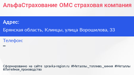 АльфаСтрахование-ОМС, страховая компания по адресу Брянская область, Клинцы, улица Ворошилова, 33 в дальнейшем Организация, размещена в следующих категориях: