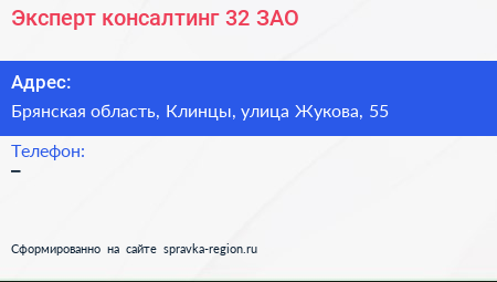 Эксперт консалтинг-32, ЗАО по адресу Брянская область, Клинцы, улица Жукова, 55 в дальнейшем Организация, размещена в следующих категориях: