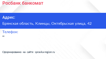 Росбанк, банкомат по адресу Брянская область, Клинцы, Октябрьская улица, 42 в дальнейшем Организация, размещена в следующих категориях: