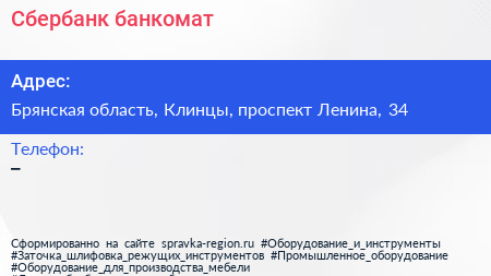 Сбербанк, банкомат по адресу Брянская область, Клинцы, проспект Ленина, 34 в дальнейшем Организация, размещена в следующих категориях: