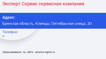 Эксперт Сервис, сервисная компания по адресу Брянская область, Клинцы, Октябрьская улица, 20 в дальнейшем Организация, размещена в следующих категориях: