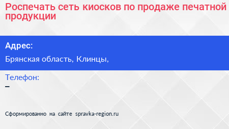 Роспечать, сеть киосков по продаже печатной продукции по адресу Брянская область, Клинцы, в дальнейшем Организация, размещена в следующих категориях:
