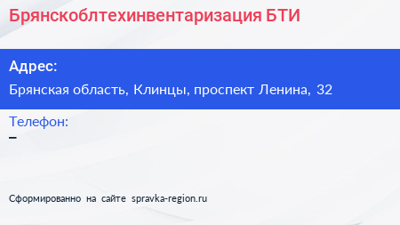Брянскоблтехинвентаризация, БТИ по адресу Брянская область, Клинцы, проспект Ленина, 32 в дальнейшем Организация, размещена в следующих категориях:
