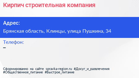 Кирпич, строительная компания по адресу Брянская область, Клинцы, улица Пушкина, 34 в дальнейшем Организация, размещена в следующих категориях: