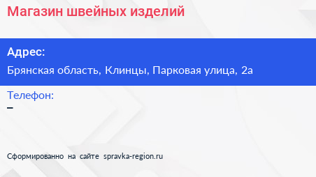 Магазин швейных изделий по адресу Брянская область, Клинцы, Парковая улица, 2а в дальнейшем Организация, размещена в следующих категориях: