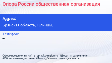 Опора России, общественная организация по адресу Брянская область, Клинцы, в дальнейшем Организация, размещена в следующих категориях: