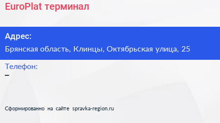 EuroPlat, терминал по адресу Брянская область, Клинцы, Октябрьская улица, 25 в дальнейшем Организация, размещена в следующих категориях: