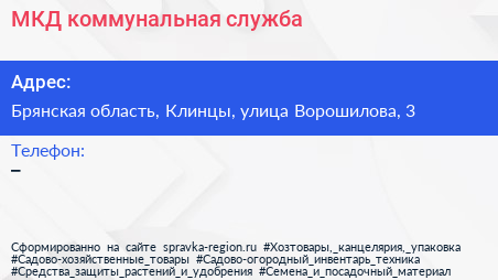 МКД, коммунальная служба по адресу Брянская область, Клинцы, улица Ворошилова, 3 в дальнейшем Организация, размещена в следующих категориях: