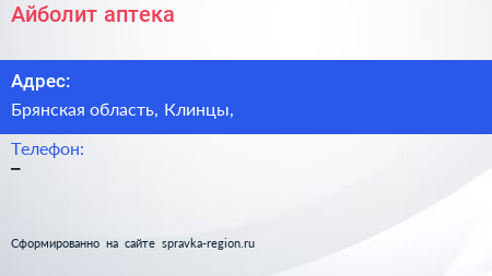 Айболит, аптека по адресу Брянская область, Клинцы, в дальнейшем Организация, размещена в следующих категориях: