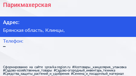 Парикмахерская по адресу Брянская область, Клинцы, в дальнейшем Организация, размещена в следующих категориях: